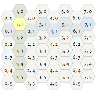 Since I wanted to work with up to six-sided polygons, I first began reading up on hexagons from the nice blog post from redblobgames. They detailed several ways for laying out a grid in memory, so I arbitrarily chose the version where every even column is shifted down slightly.