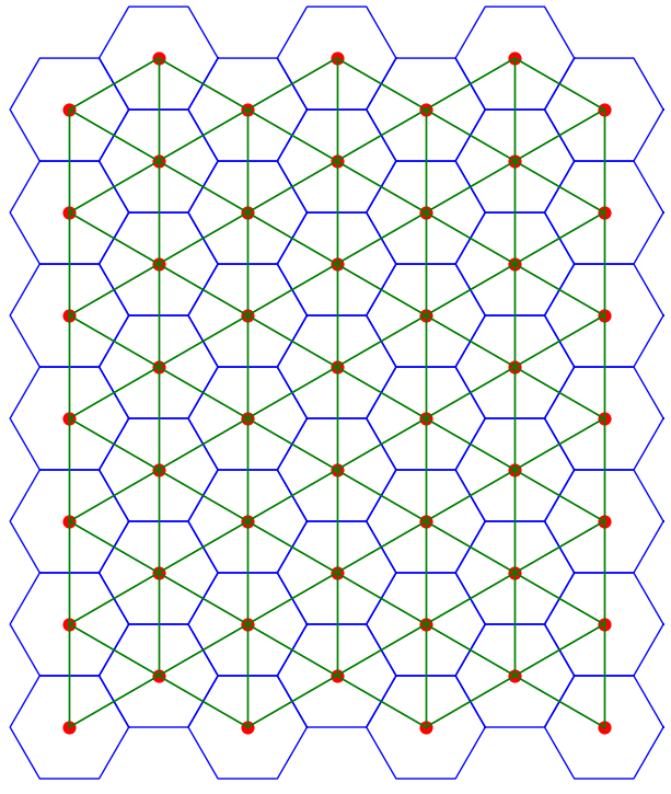 - Take the simplest hexagonal grid, which can be seen as planar.