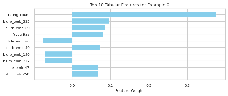 On the other hand, the teacher model places considerably more weight on the metadata. This visual showcases the most important features for a teacher’s example prediction.